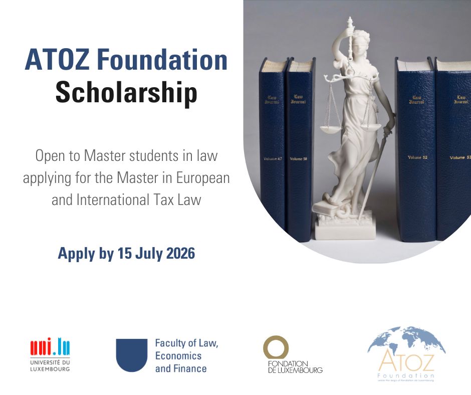 La Fondation ATOZ, sous l'égide de la Fondation de Luxembourg, soutient les étudiants du Master 2 en droit fiscal européen et international (LL.M.) de l'Université du Luxembourg.