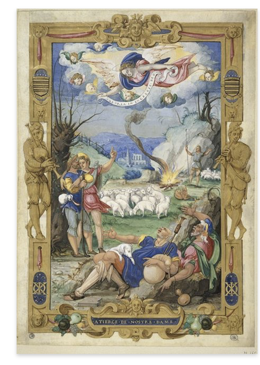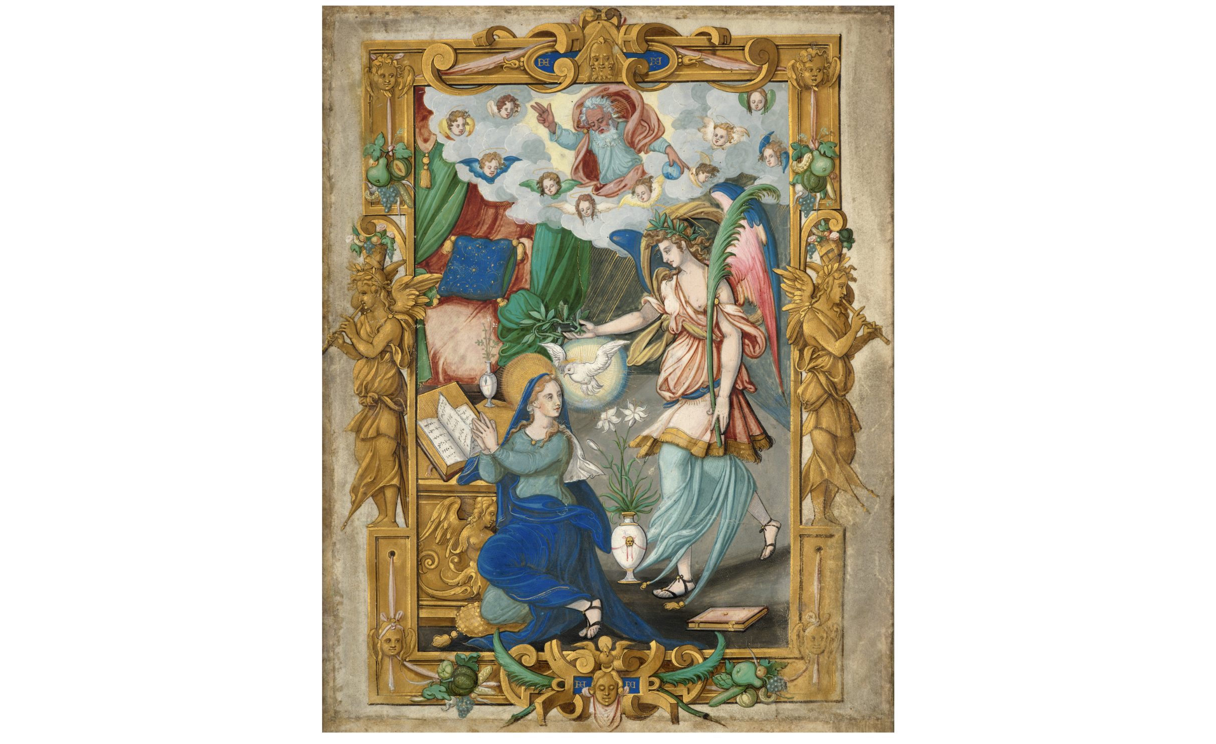 Le mécène n’a pas eu le temps de souffler car quelques jours plus tard passait en vente chez Artcurial une cible qu’il avait repérée en même temps que Mathieu Deldicque, qui l’a identifiée comme une enluminure du maître du psautier Gouffier. On y voit un chiffre quatre fois répété : deux D affrontés avec une barre horizontale ; ce n’est pas le chiffre principal de Claude Gouffier mais un chiffre secondaire qu’on l‘a vu utiliser en plusieurs occasions. D’après Mathieu, il doit se lire comme deux C affrontés réunis par un H, C de Claude et H de sa mère Hélène de Hangest. L’enluminure a toutes les caractéristiques de celles de la Renaissance française, dont le maître incontesté fut Noël Bellemare, avec des bordures très architecturées ornées de pilastres ou comme ici remplies de cuirs, encadrées de statues et ponctuées d’angelots. Le chant du cygne de l’enluminure est une apothéose !