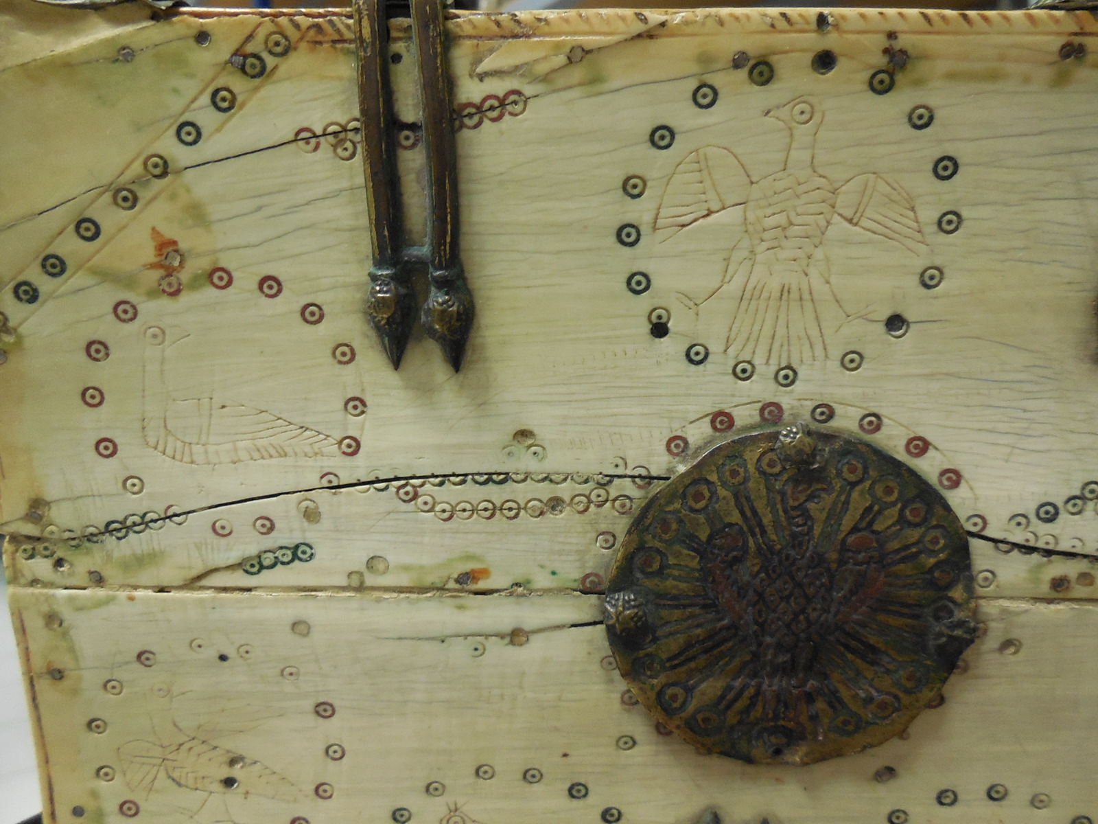 Le 15 juin 2017, le musée de Cluny a pu acquérir avec notre soutien un coffret dit siculo-arabe du XIIIe siècle. Il appartient à une série bien connue de coffrets réalisés en Sicile, souvent par des artisans arabes, à partir de plaques d'ivoire reçues d'Égypte. Il est orné de motifs incisés représentant des oiseaux dans des cercles et d'un médaillon émaillé sur le couvercle. On y voit un aigle aux ailes déployées tête à droite, entouré de 24 rayons. Les deux motifs nous renvoient à l'illustre Frédéric II de Hohenstaufen, empereur du Saint-Empire romain germanique, roi des Romains, de Jérusalem et de Sicile : l'aigle à deux têtes germanique devient sur ses monnaies (les augustales) un aigle à une tête tournée vers la droite. Et les 24 rayons sont une représentation de la roue solaire, un symbole païen très ancien auquel on l'a souvent associé, en tant que centre d'un pouvoir rayonnant sur une multitude de territoires, lui qu'on qualifiait de stupor mundi.