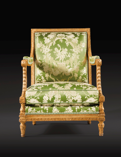 En décembre 2023, Sotheby’s a consacré plusieurs ventes aux collections Hubert Guerrand-Hermès. Le 13, était présenté un ensemble de six chaises de Georges Jacob pour le salon de Bagatelle. Nous les connaissions bien pour les avoir manquées en mars 2000 lors de la vente par les descendants de la comtesse Greffulhe. En fait, Françoise de Panafieu, qui avait pris la suite de Jacqueline Nebout à la mairie de Paris, s’intéressait peu à Bagatelle. De toutes les façons, même si nous avions réussi à la convaincre, on ne les aurait pas eues en raison du prix élevé que n’a pas hésité à payer M. Guerrand-Hermès. En 2023, les prix sont devenus plus raisonnables et pour les chaises ont baissé de moitié. La fondation a pris en charge une des chaises. Elles ont un dossier en éventail cintré pour s’adapter à la courbure du salon, et ont été sculptées par JB Rode. Ces chaises rejoindront les sièges déjà présents dont de belles marquises. Manque encore le fauteuil du roi.